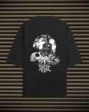 Sink into the dark side of relaxation with our Jack Ozon Relax Oversized T-Shirt, a perfect staple for your alt-fashion collection. This jet-black tee features a detailed monochrome back print showcasing a fanged skull alongside a vintage whiskey bottle and a smoldering ashtray, set against a stark lunar backdrop. Tailored with a modern boxy fit and relaxed drop shoulders, this heavy-duty cotton shirt captures a moody, underground vibe. Designed for a gender-neutral 16-28 audience, this graphic tee effortlessly blends grit and comfort, making it an essential piece for those who appreciate a trippy, noir-inspired street aesthetic.