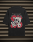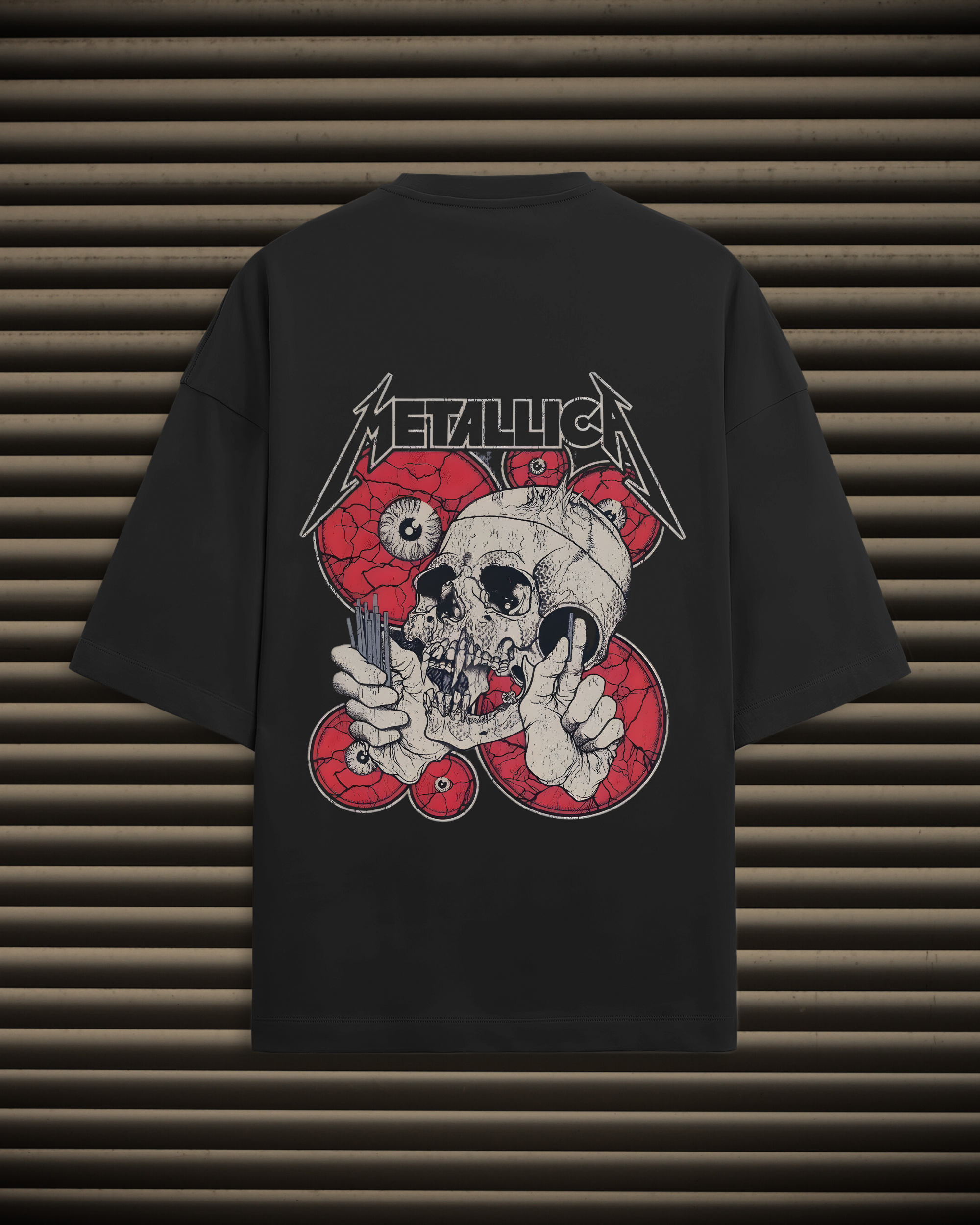 Elevate your streetwear rotation with this Metallica “Shortest Straw” Oversized T-Shirt. Crafted from premium heavyweight cotton, this tee features a trendy drop-shoulder fit for maximum comfort and a modern, boxy silhouette.While the front remains sleek and minimal in solid black, the back boasts a massive, high-definition graphic of a skull clutching straws set against cracked red spheres, crowned by the legendary jagged Metallica logo. Perfect for concerts or casual wear, this bold back-print graphic tee combines vintage metal aesthetics with contemporary street style.