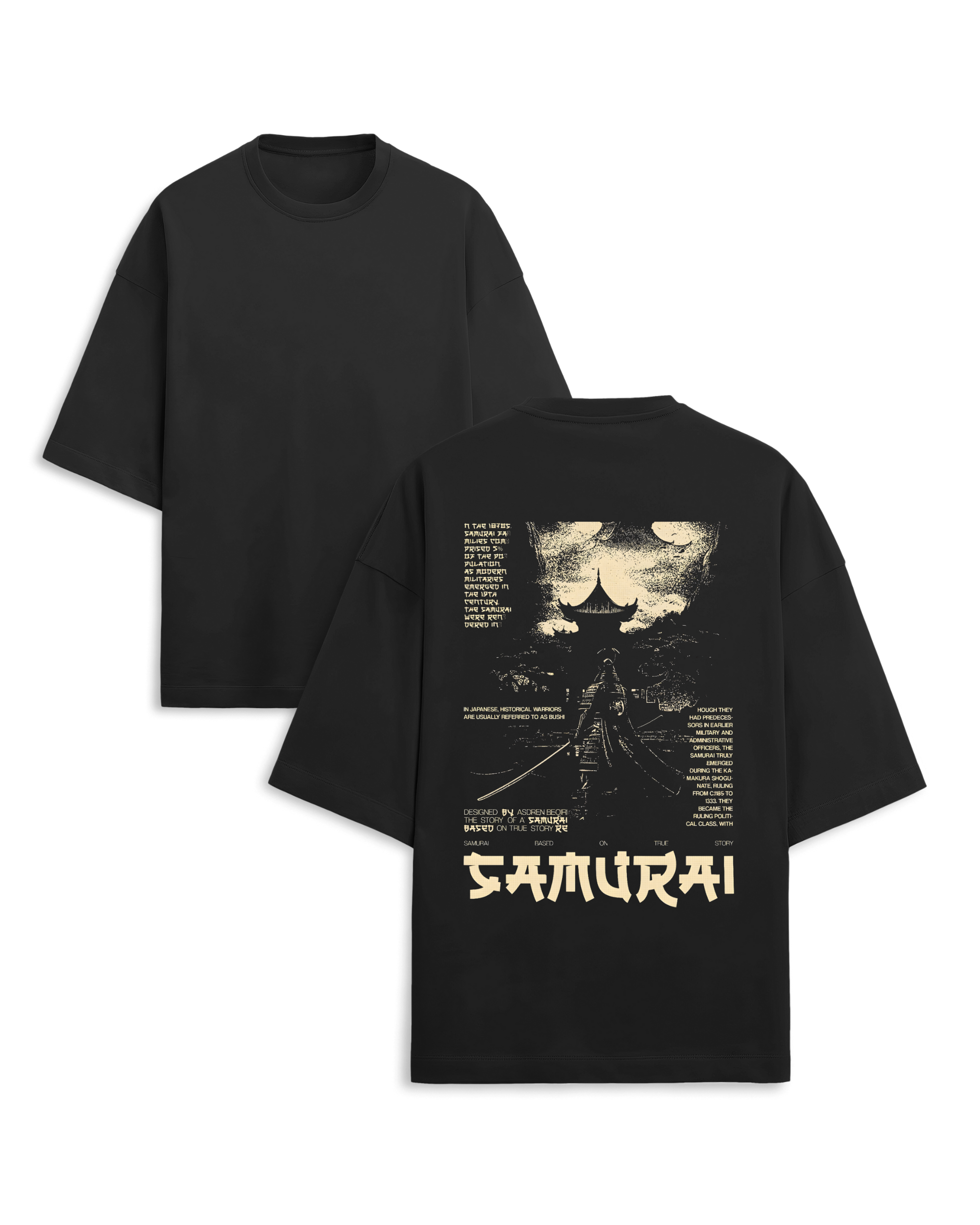 Embrace the spirit of the bushido with the Samurai Shadows Oversized Unisex T-Shirt, a perfect blend of historical lore and modern street style. This jet-black tee features a detailed back print depicting a lone samurai silhouette against a traditional pagoda and moonlit landscape, surrounded by authentic Japanese text. The relaxed drop-shoulder fit and boxy silhouette offer a trendy, gender-neutral look that resonates with fans of anime and eastern philosophy alike. Made from premium, heavy-weight cotton, this graphic tee provides both durability and a high-fashion edge for any Gen-Z or millennial wardrobe seeking an underground, trippy aesthetic.